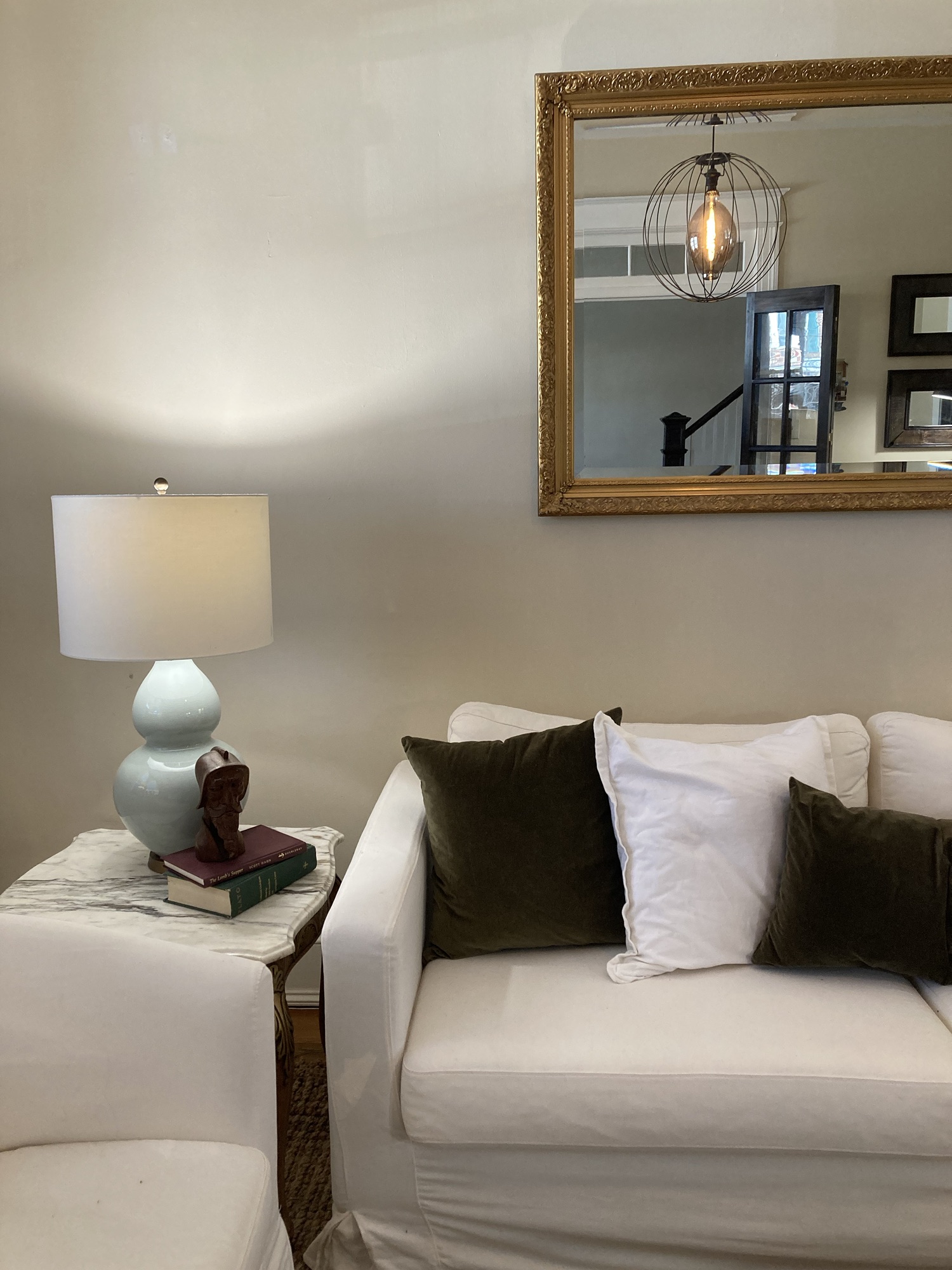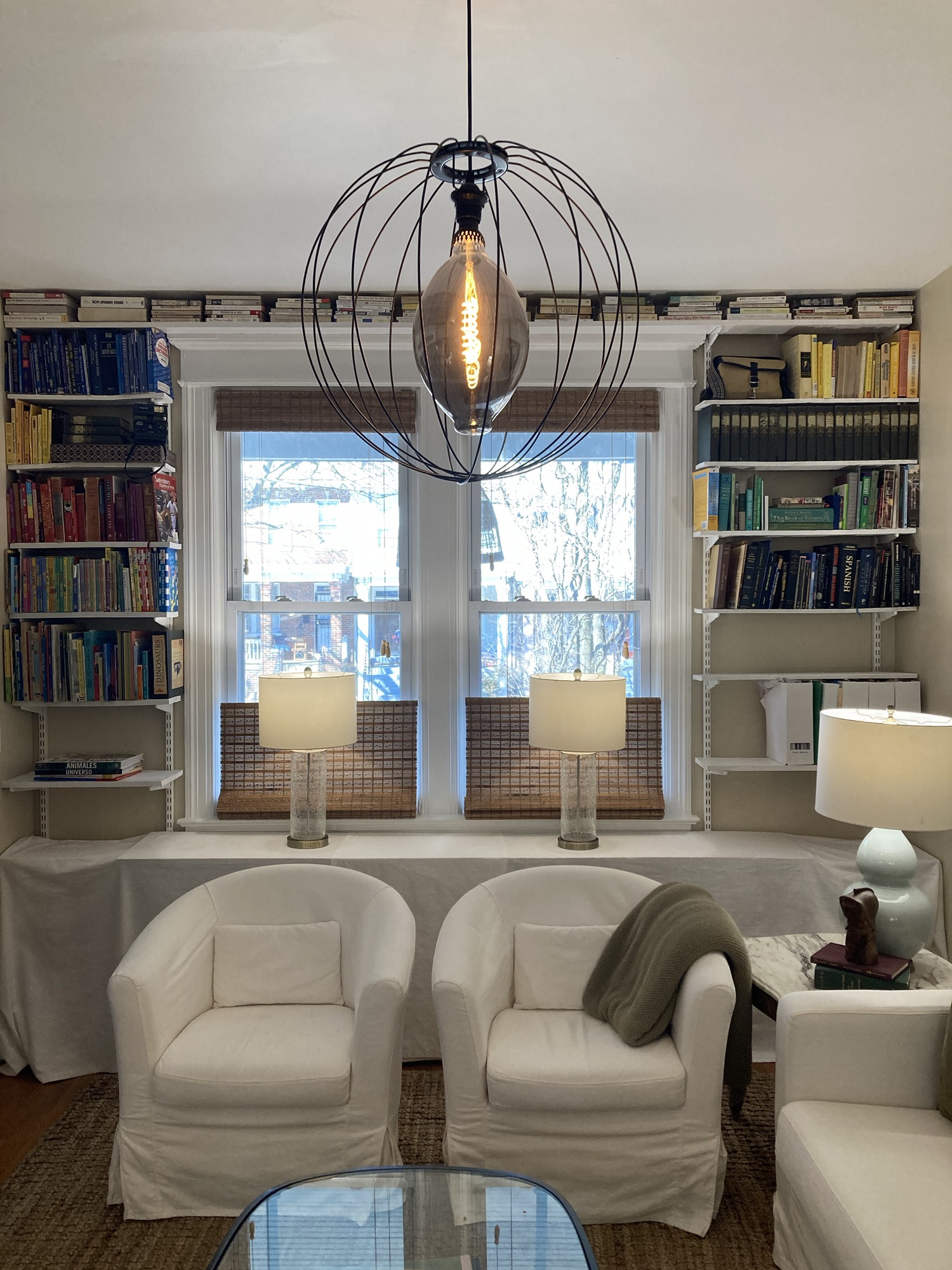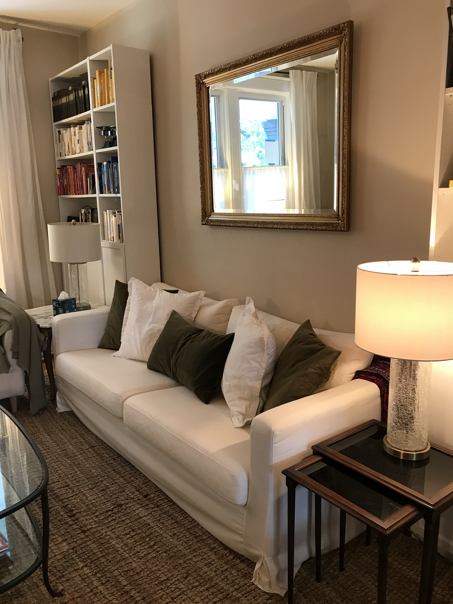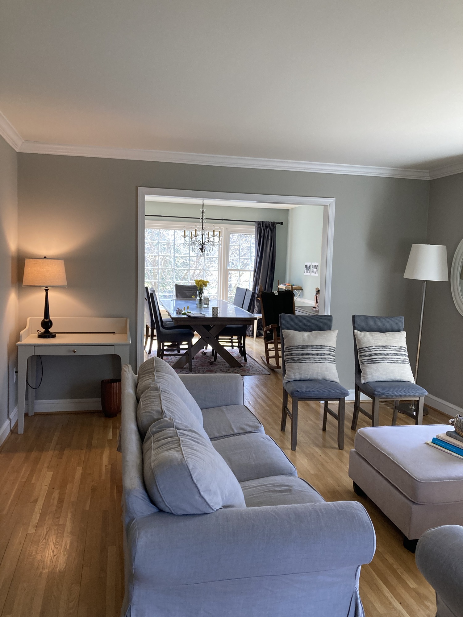 A design-in-a-day living room makeover using only what my client had in Silver Spring, MD