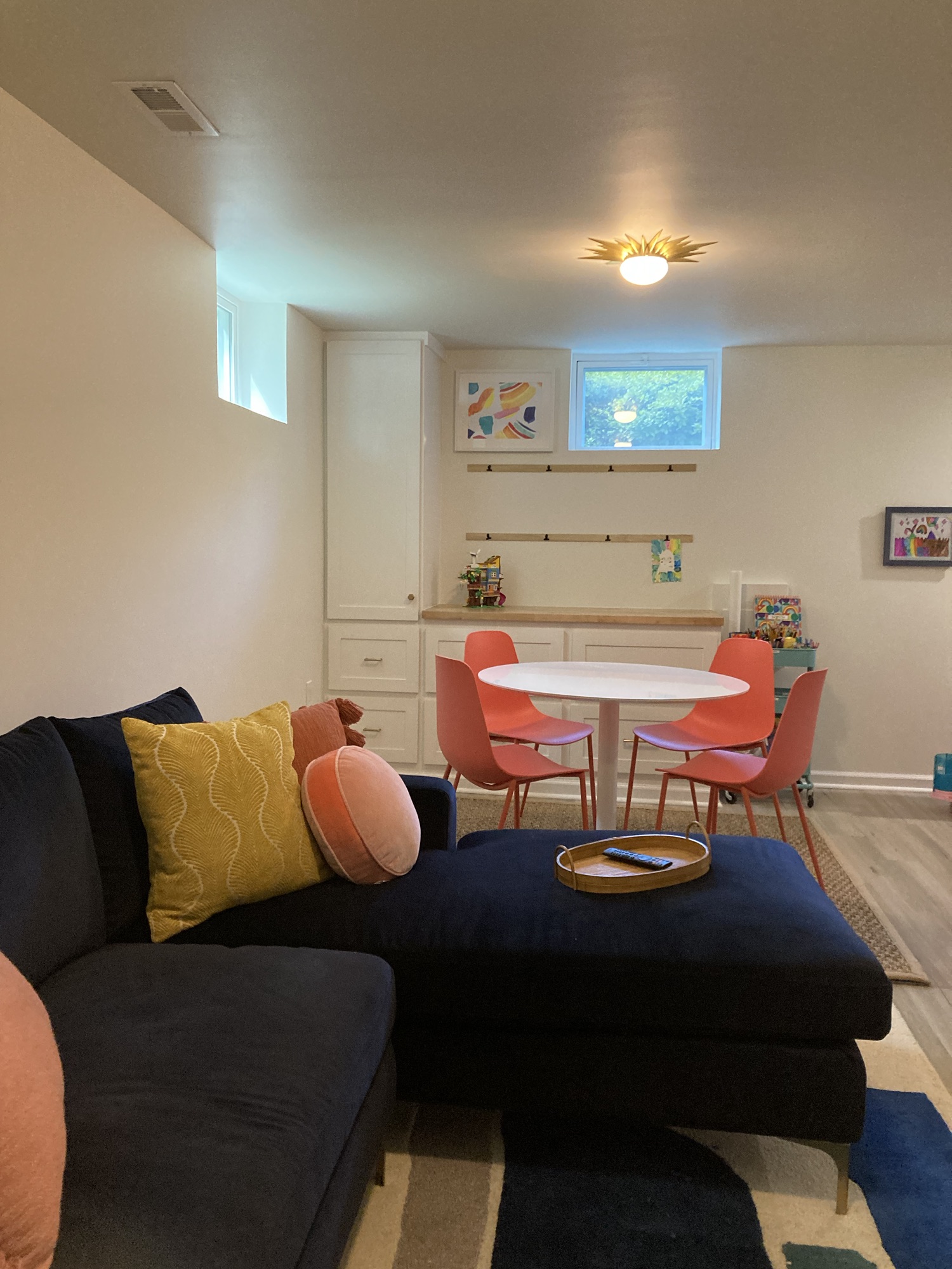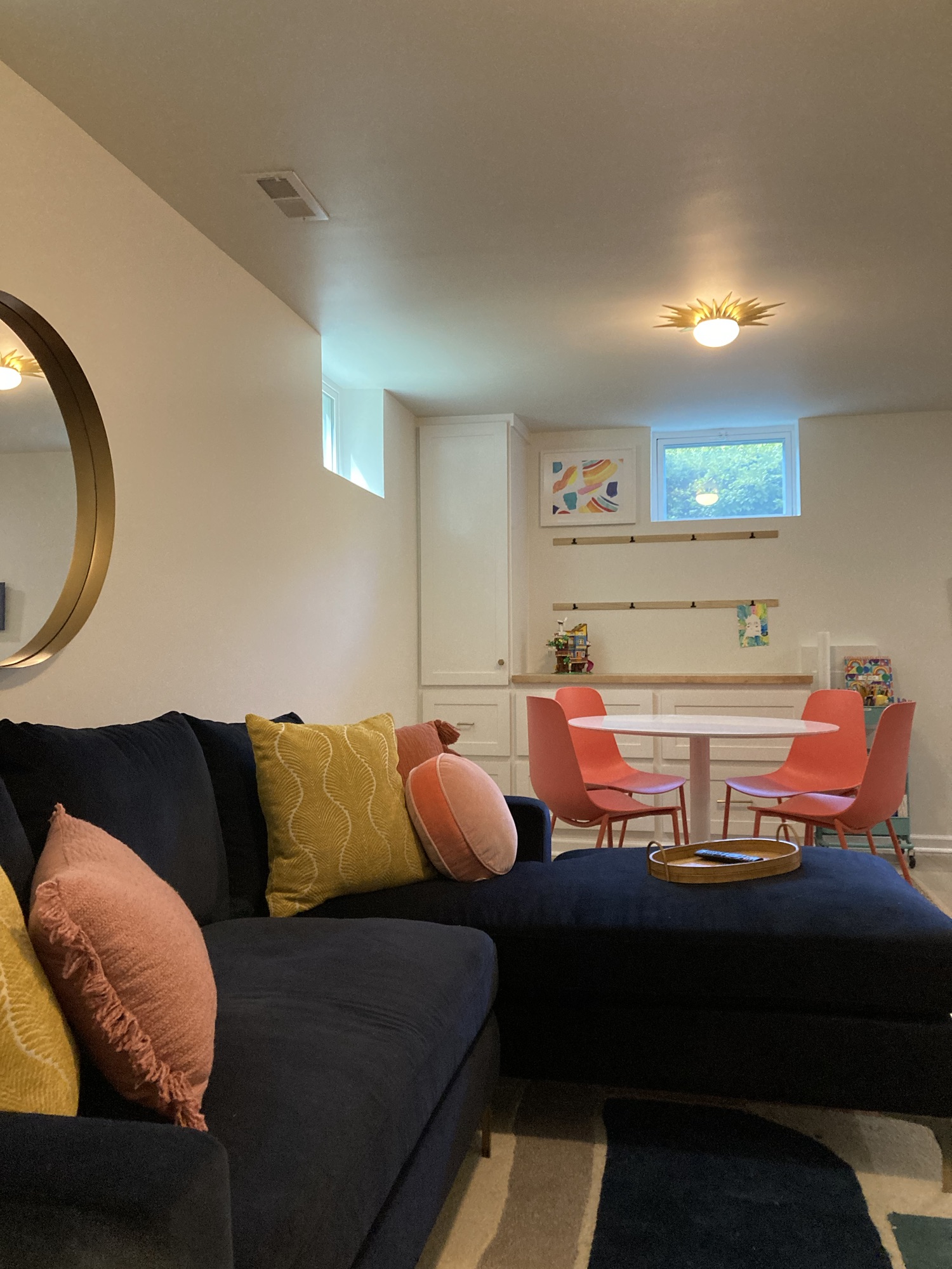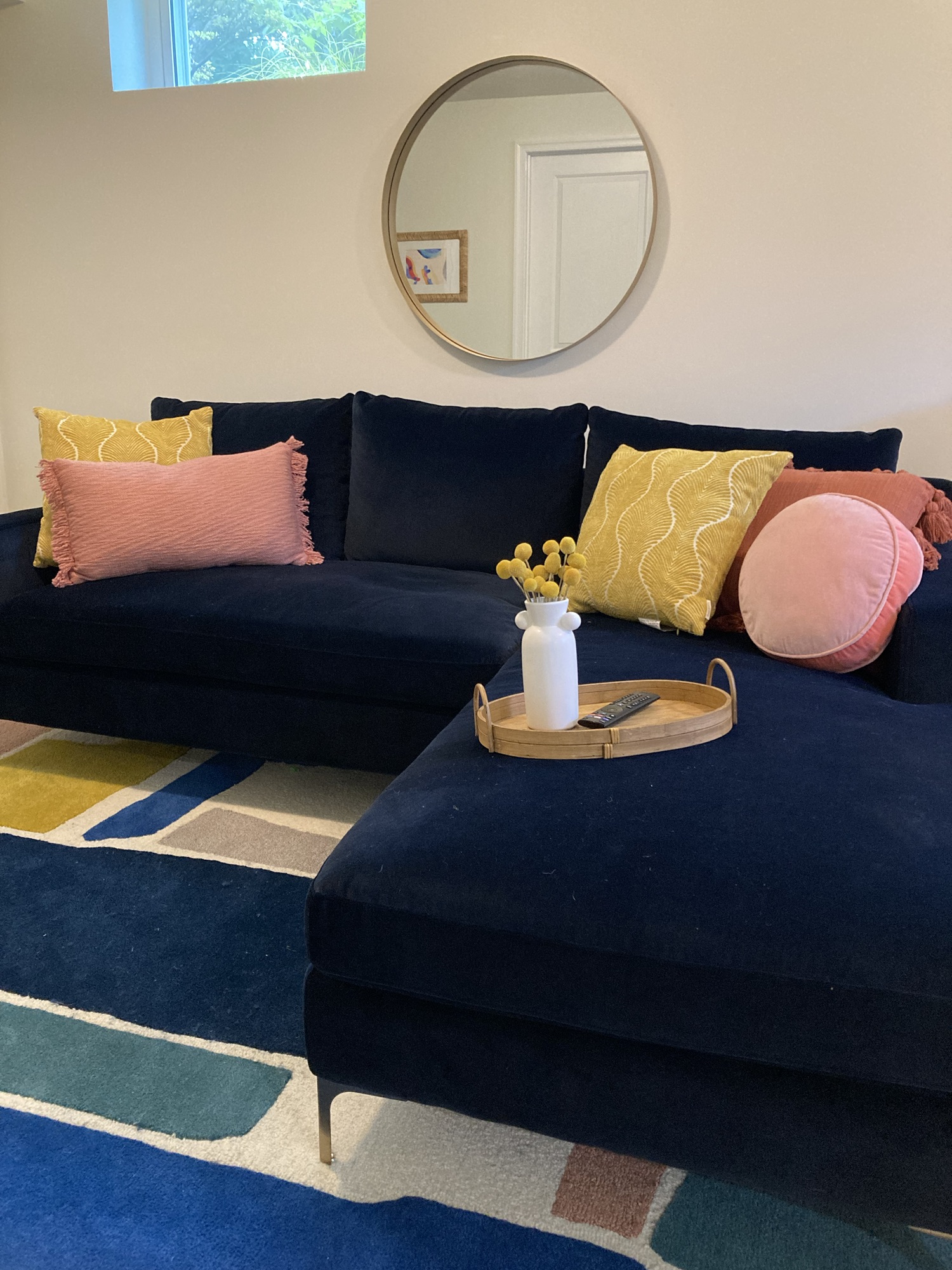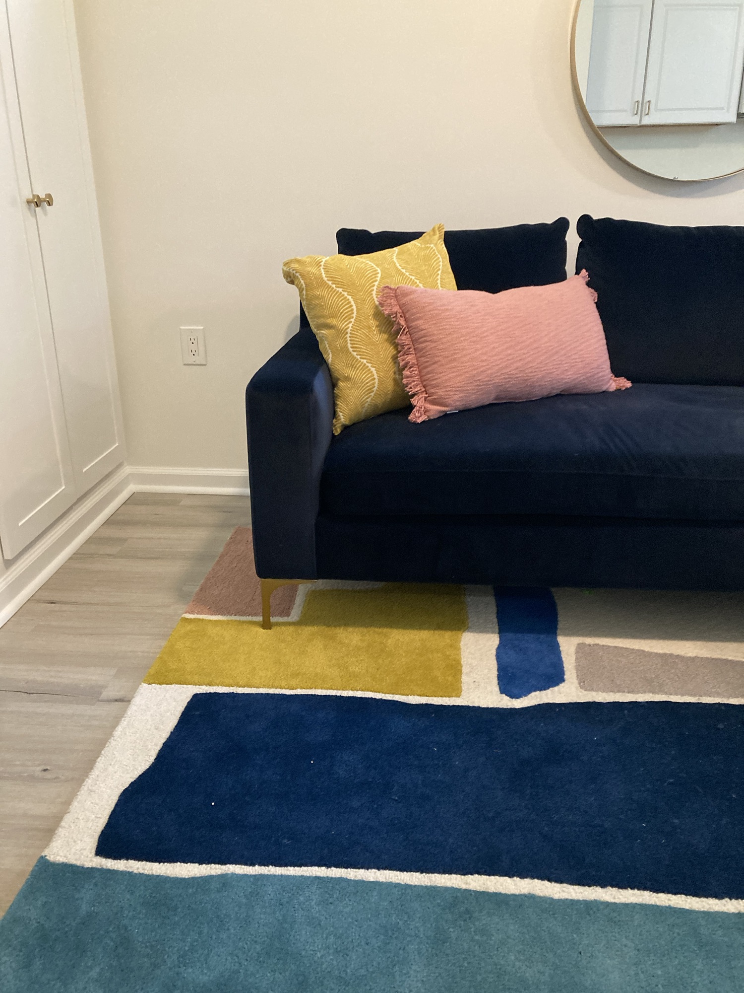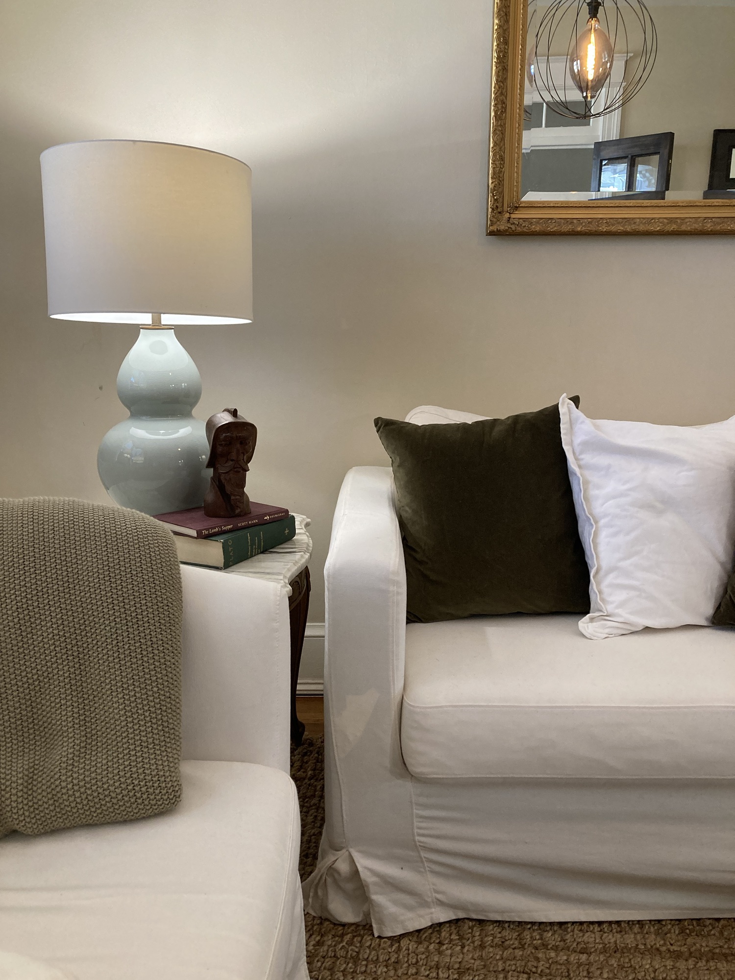 A design-in-a-day living room makeover using only what my client had in Silver Spring, MD